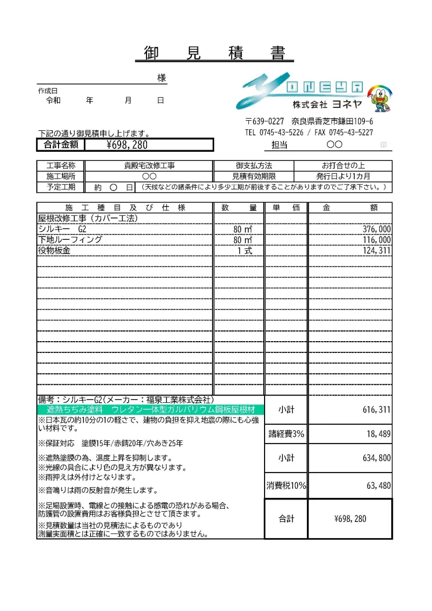 ヨネヤではお客様に心から納得して頂くために見積書を作成するだけでなく、その内訳を丁寧にご説明いたします。