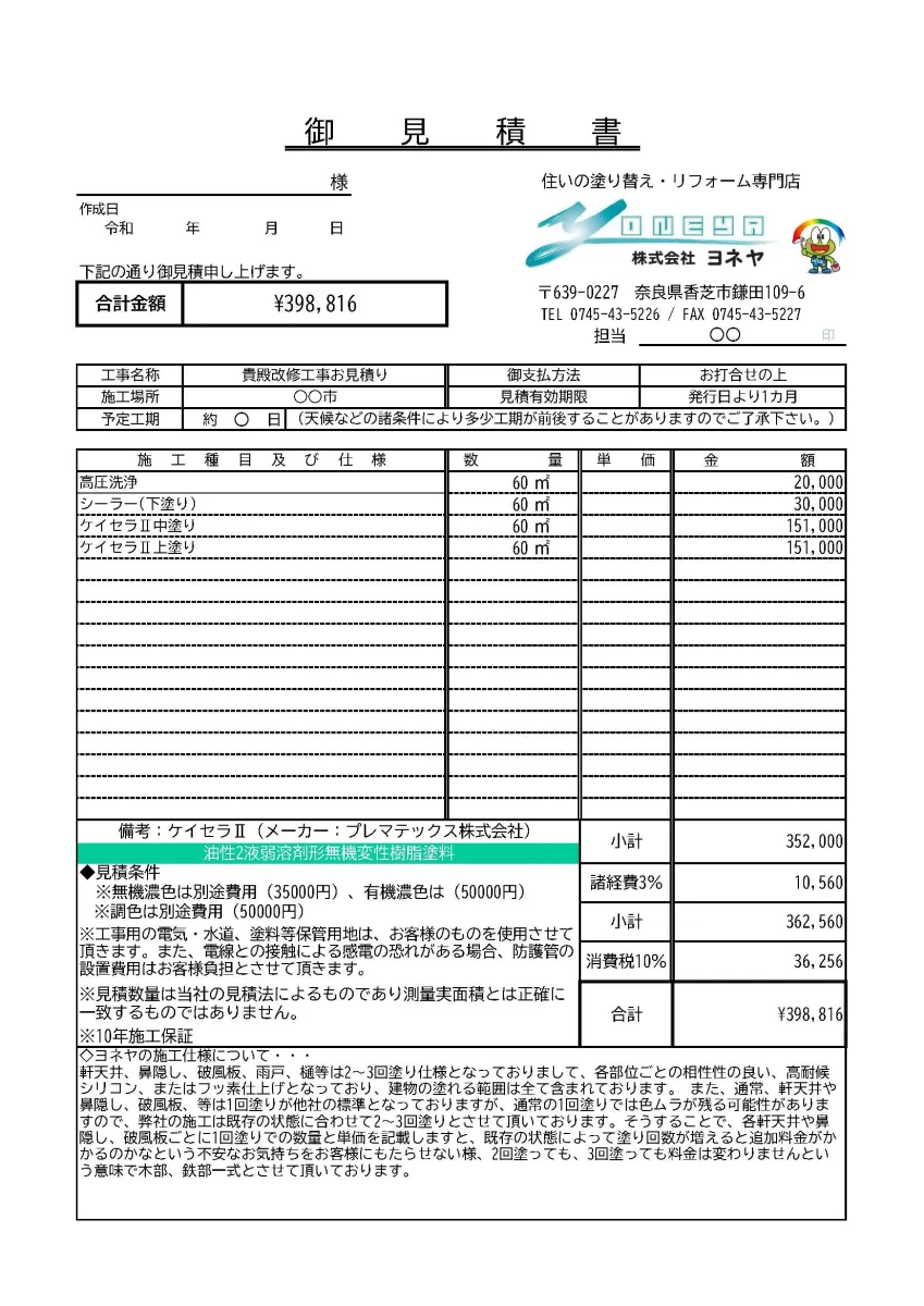 塗装専門店のヨネヤではお客様に心から納得して頂くために見積書を作成するだけでなく、その内訳を丁寧にご説明いたします。