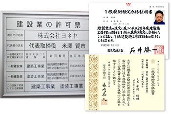 大切なおうちの工事をお任せするにあたり、資格ではありませんが、会社に与えられる県知事許可書というものがあります。